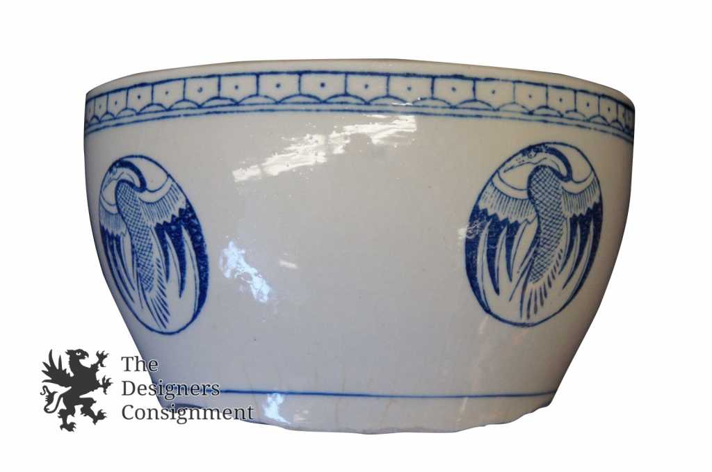 This is a gorgeous piece of Chinese porcelain. It is a vintage white and blue rice bowl that is decorated with blue cranes on a white background. This is an absolutely beautiful piece and it would make a wonderful addition to your home or collection.