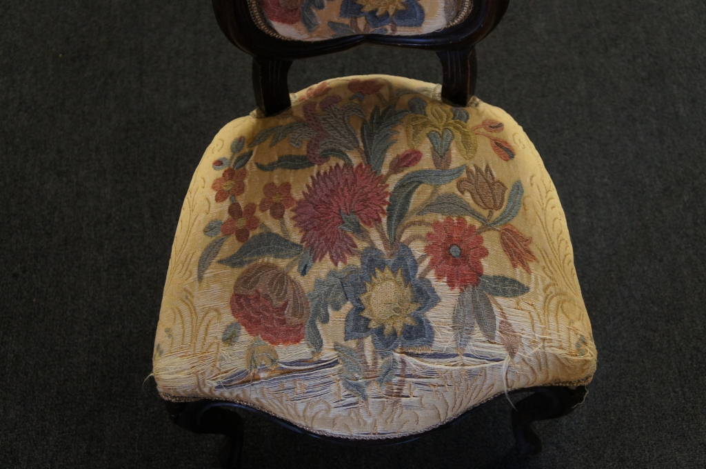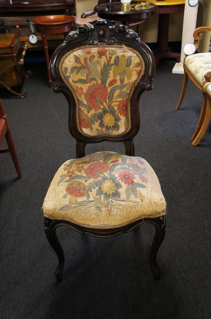 Antique Rosewood Carved Victorian Accent Chair Ca. 1850s Floral Needlepoint