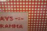 This is a gorgeous needlepoint. It is a vintage needlepoint that reads "If mama says no ask gramma" and it is in a red frame with plaid matting. This is an absolutely beautiful piece and it would make a wonderful addition to your home or collection.