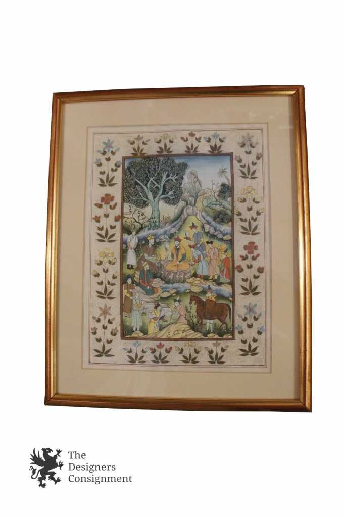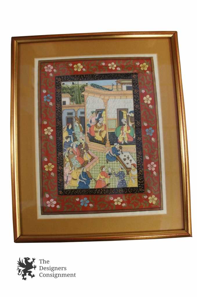 Here are 2 lovely hand painted Indian/Persian scenes on silk. Each features vibrant color and attention to detail. A wonderful piece for any home