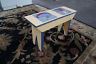 A cute children's bench. On top is a picture of a mouse with a yoyo and a rocking horse. A fun addition to any home or playroom