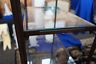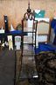 A wonderful Iron Display Rack. Features 5 shelves that cascade upwards. A wonderful addition to any home or collection. This piece is lightweight and easy to move around without the glass.