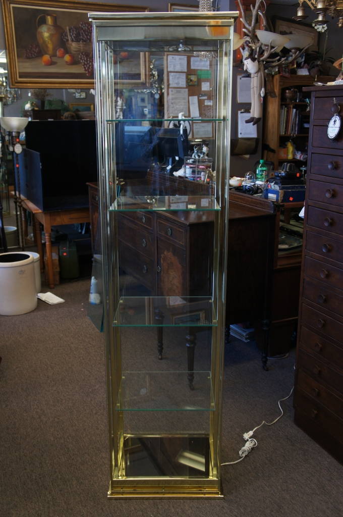 Vintage Mastercraft Brass & Glass Sleek Display Cabinet Curio China Regency