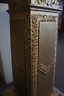 Here is a gorgeous Art Nouveau Marble top pedestal. Made from solid wood with a gesso carved exterior that was then painted gold. The marble is white and features a cut edge. A truly spectacular piece that will look wonderful in your home!
