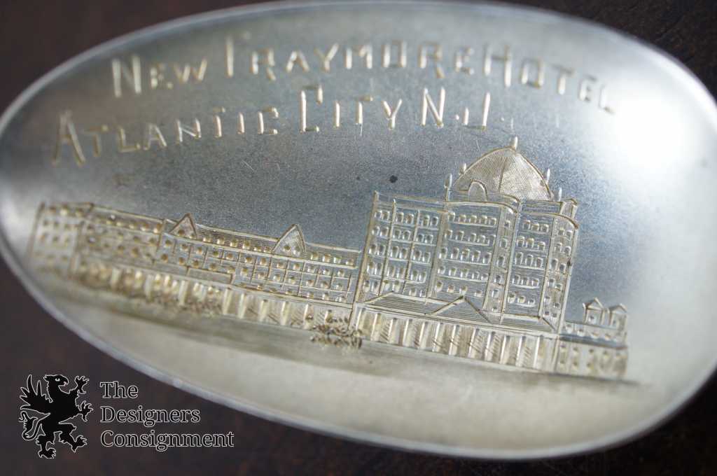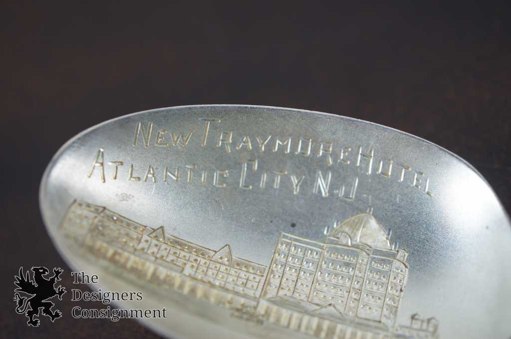 Here is a great piece of Atlantic City history. This sterling silver spoon features a hand etched depiction of the "New" Traymore Hotel circa the late 1890s-1910. Made by R. Wallace and Sons Mfg. Co.