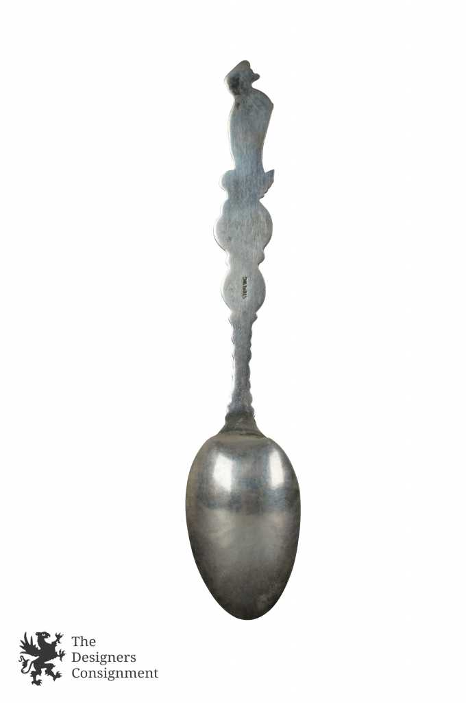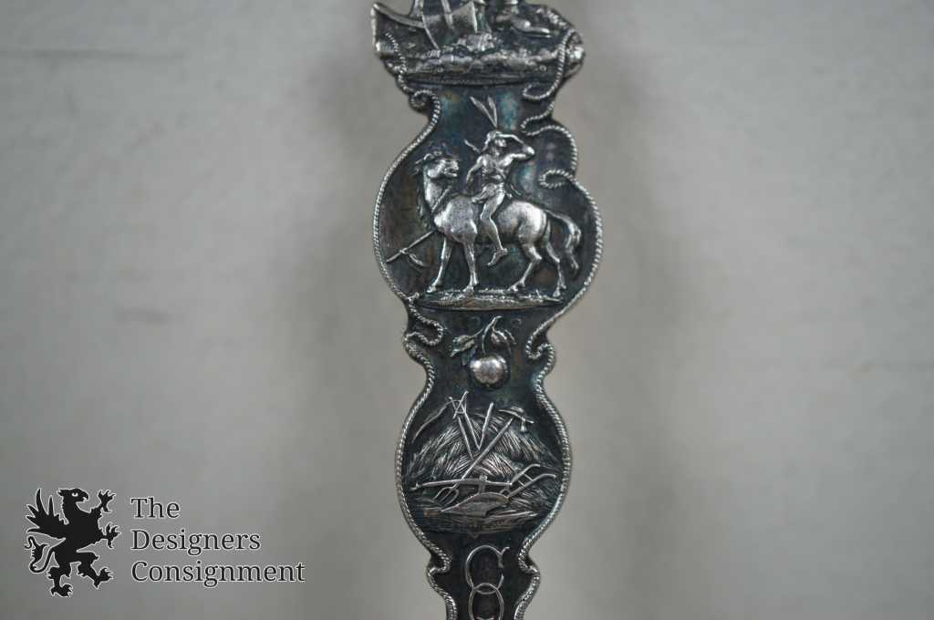 Here is a great piece of Colorado and American history. This sterling silver spoon features a depiction of the Pike's Peak Signal Station in the bowl, the handle has a frontiersman, an Indian and farm tools.