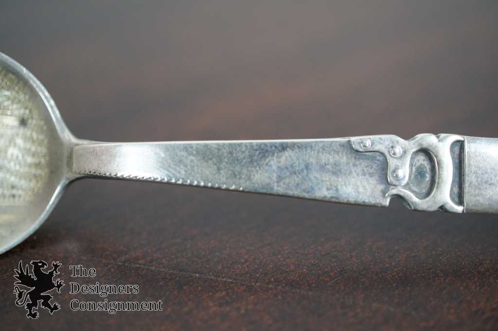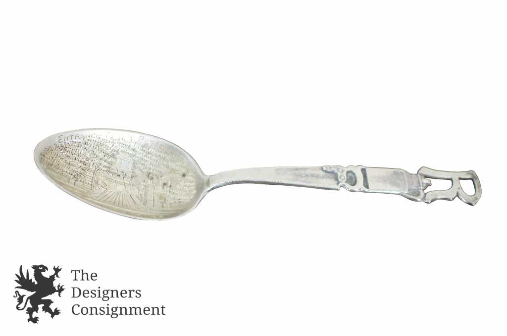 Here is a great piece of Hot Springs, Arkansas and American history. This sterling silver spoon features a hand etched depiction of the Entrance to the US Reservation at Hot Springs in the bowl, the handle has a saw, a coffee can and the letter "R".