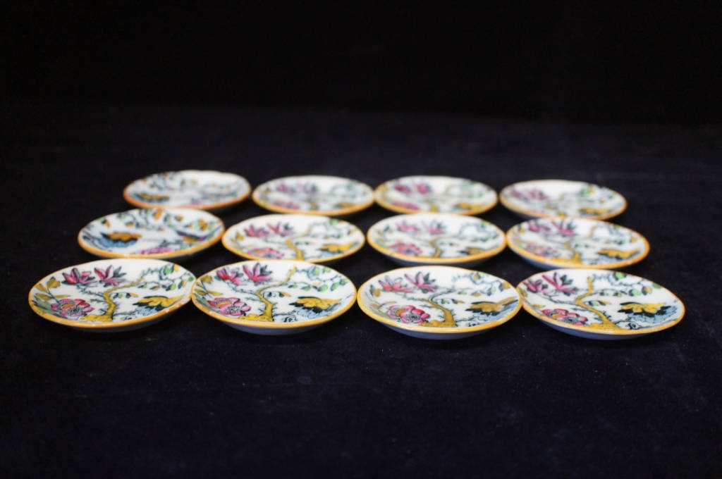 12 Antique Imari Style Hand Painted 19th Century Bone Dishes England Superb