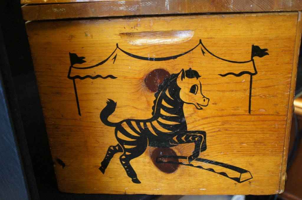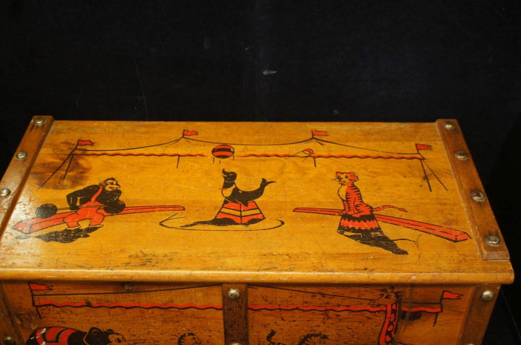 Vintage Mid Century Pine Circus Theme Western Toy Box Chest Trunk Animals Gift