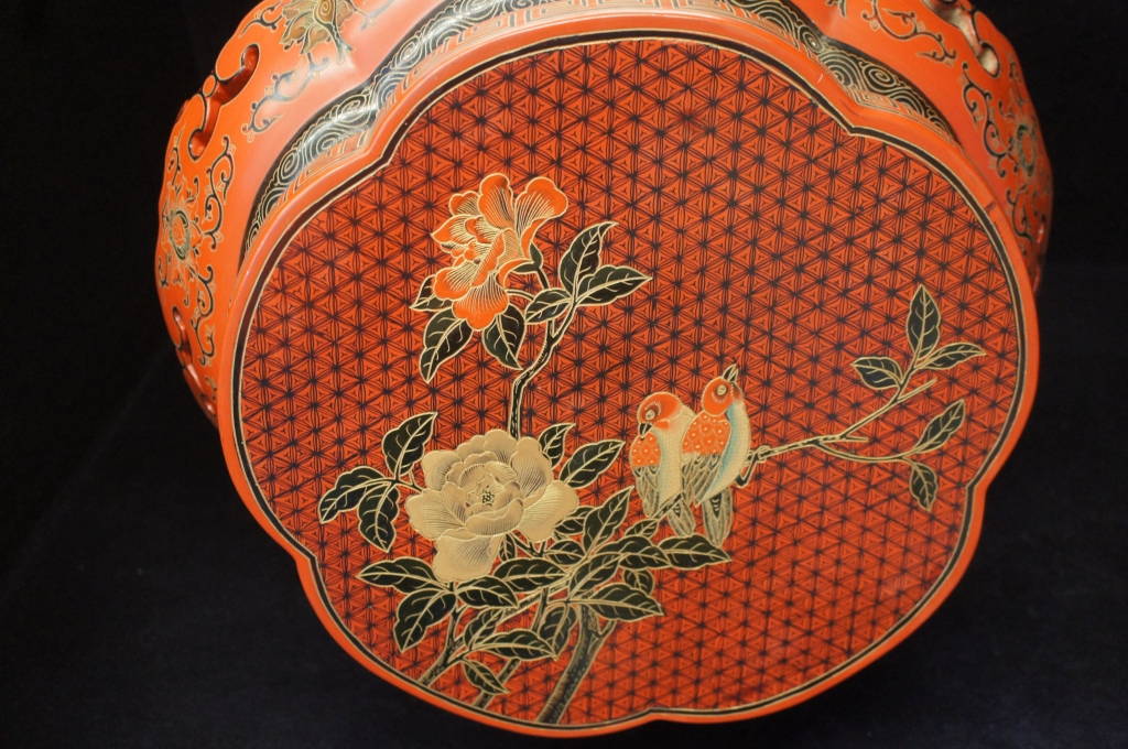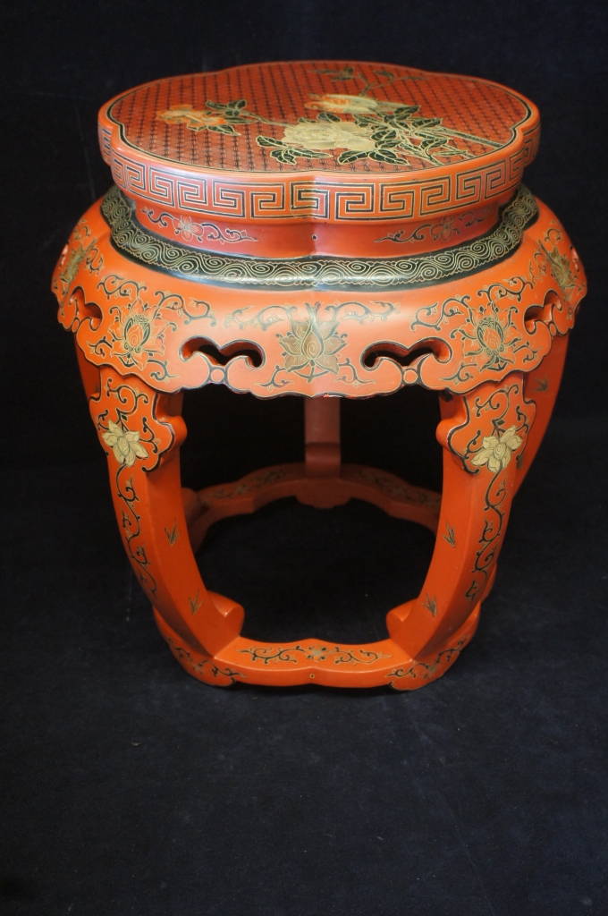Vintage Red Lacquer Carved Asian Side End Accent Table Oriental Contemporary