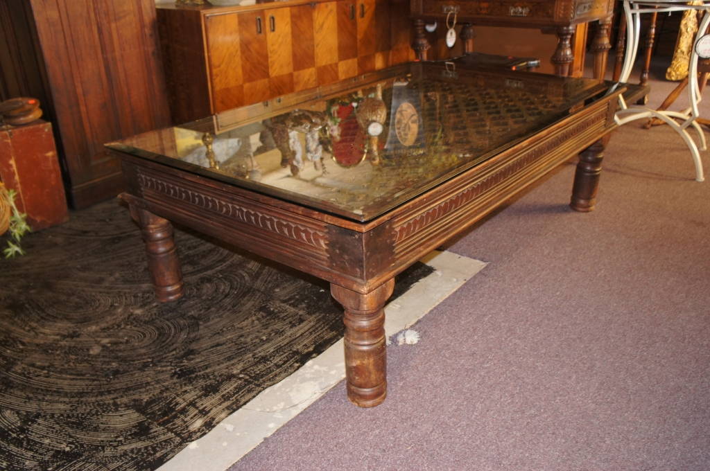 Primitive Reclaimed Wood Coffee Table Lattice Work Mosque Window Brass India