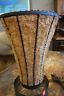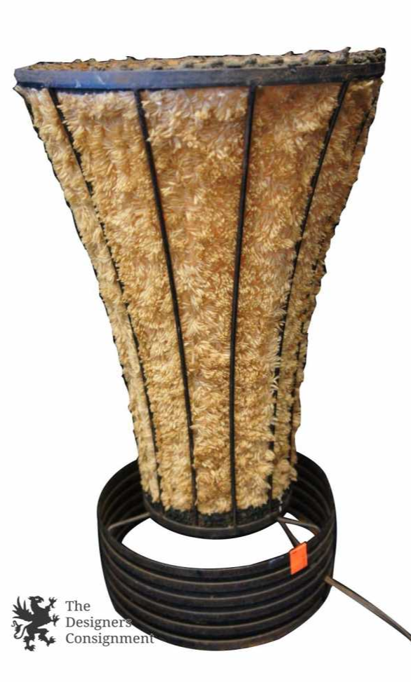 This is a wonderful contemporary table lamp. Features a furry shade with a wrought iron base.