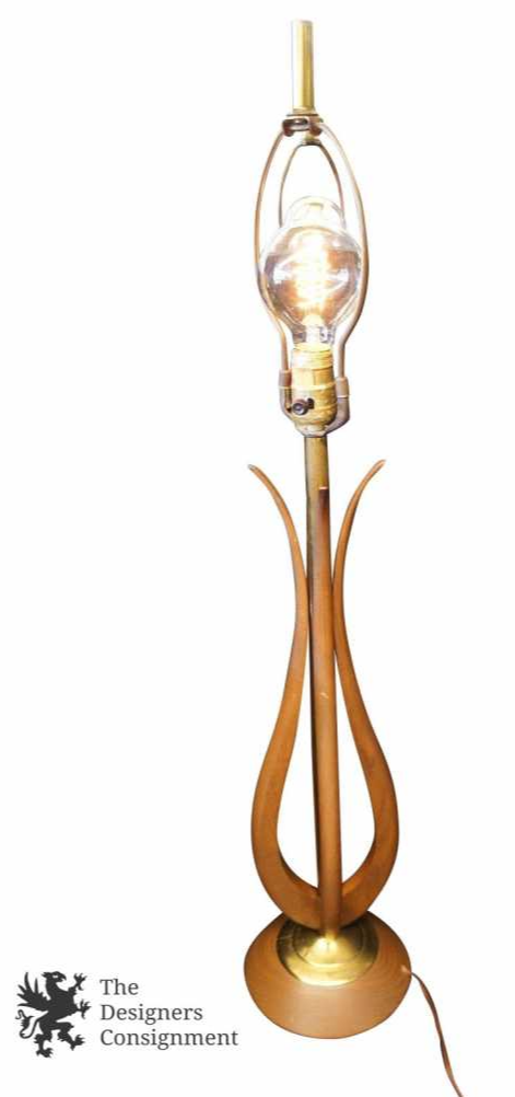 Here is a fantastic table lamp with a mid century modern style. Features an abstract tulip shape. Made from oak with a walnut finish. A fabulous addition to any home or colelction