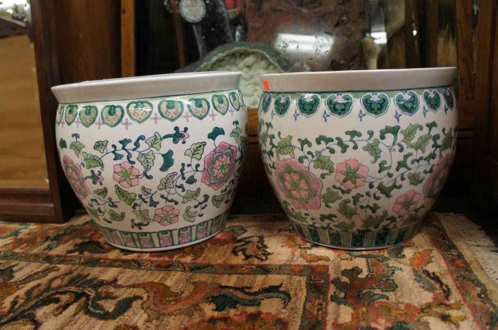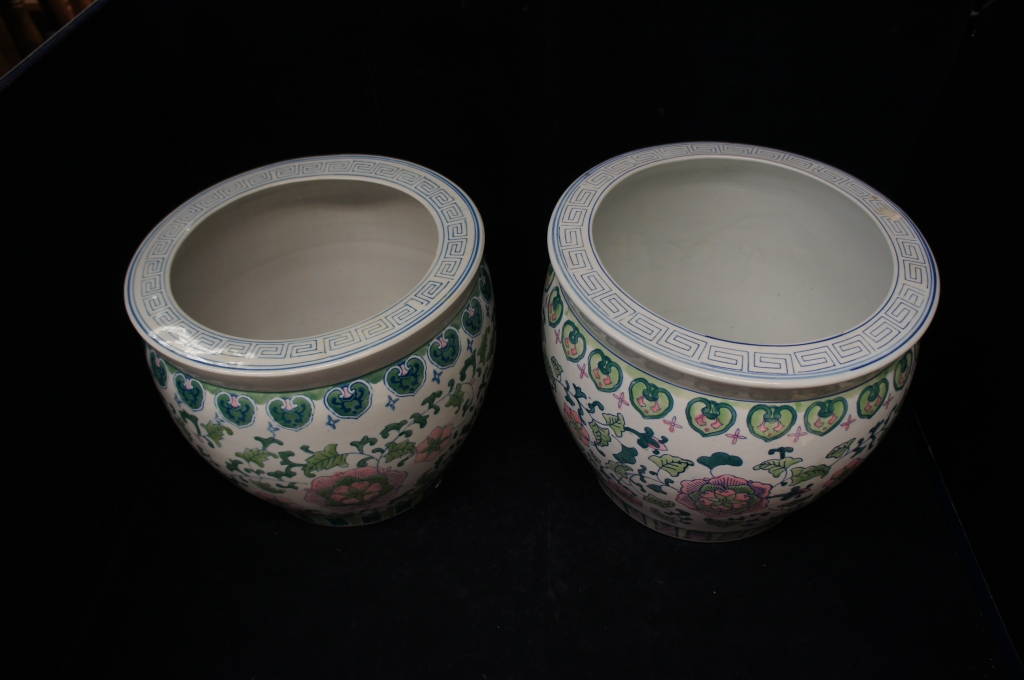2 Lovely Chinese Style Porcelain Jardiniere Flower Planters Green Pink Floral