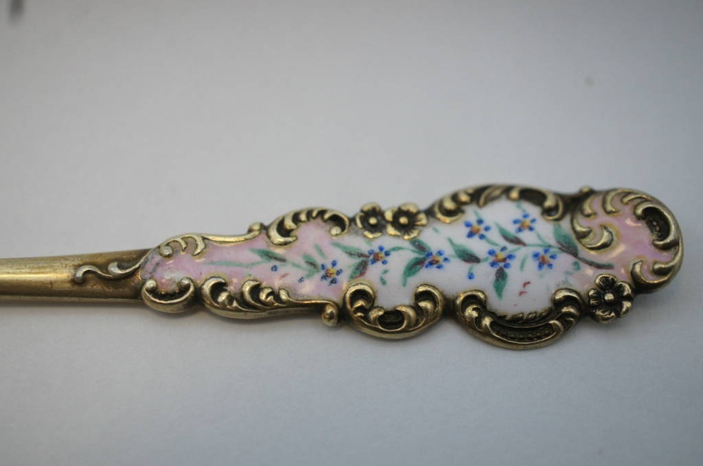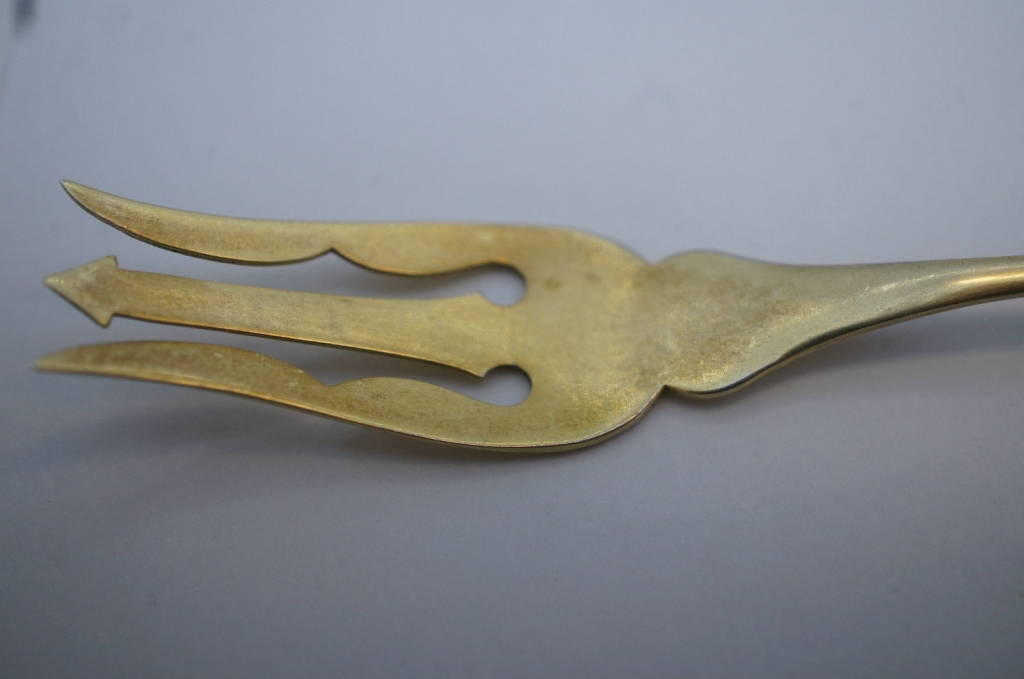 Very Rare Sterling Silver Custom Enameled Olive Pickle Cocktail Fork Blackinton