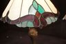 This is a gorgeous Tiffany style lamp with a glass shade. This piece This piece has a metal body to it and a stained glass shade in an Art Nouveau style. This is an absolutely beautiful piece and it would make a wonderful addition to your home or collection.