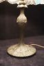 This is a gorgeous Tiffany style lamp with a glass shade. This piece This piece has a metal body to it and a stained glass shade in an Art Nouveau style. This is an absolutely beautiful piece and it would make a wonderful addition to your home or collection.