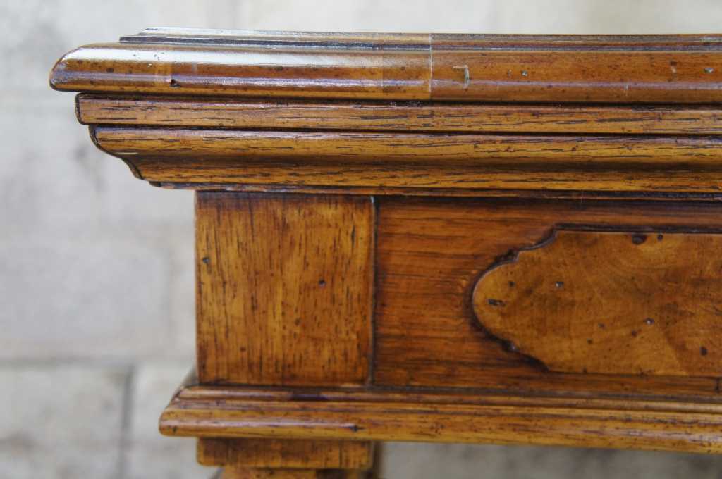 Here is a very fun sofa/ console table. Features a beveled and mirrored top. The base is walnut burl giving it a distinct look that will look fantastic in any home!
