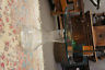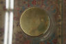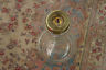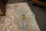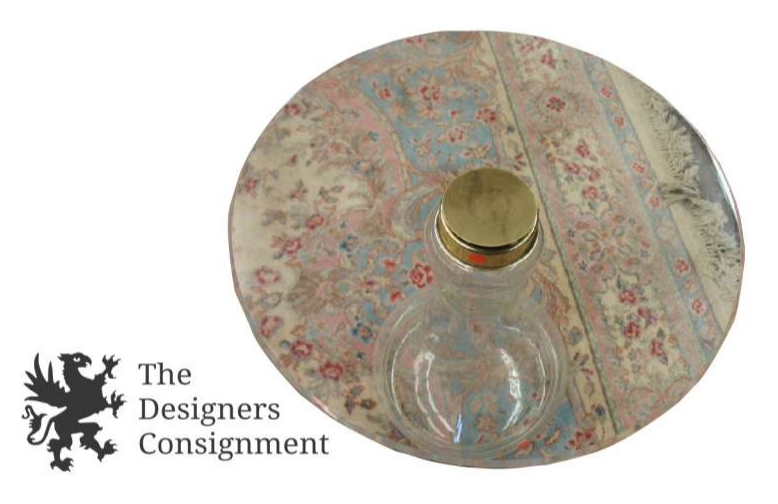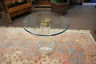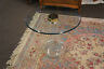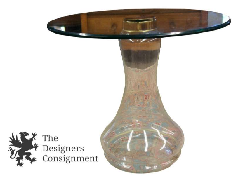 A unique glass table with brass accent. A great look that can be used indoor or outside.