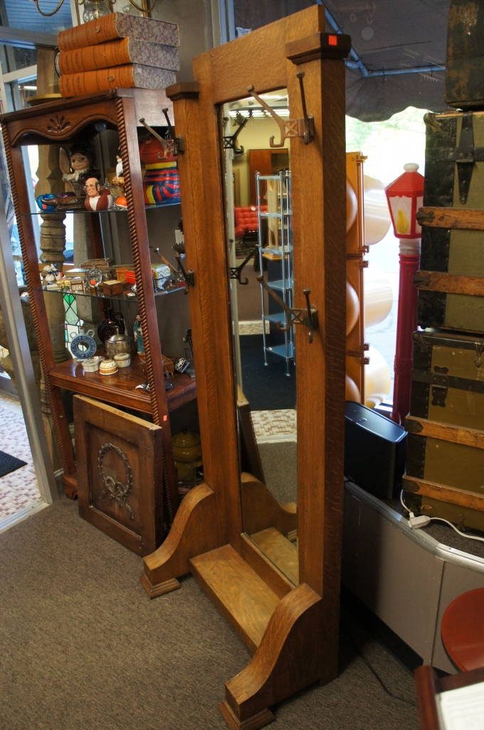 Antique Tiger Oak Mirrored Hall Tree Quartersawn Mission Pier Beveled Silver