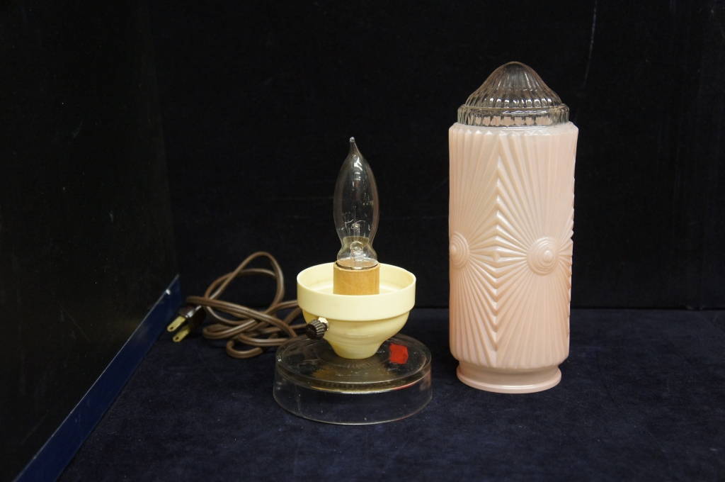 Art Deco Pink Glass Boudoir Vanity Lamps & Desk Light Antique Torpedo Bullet