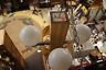 Age related wear. There are a few light scuffs on the veneer, and a few of the screws holding the globes in are missing. The chain has also been repaired in a spot which can be seen with electrical tape around it (green). Could easily be fixed by an electrician. See Pictures