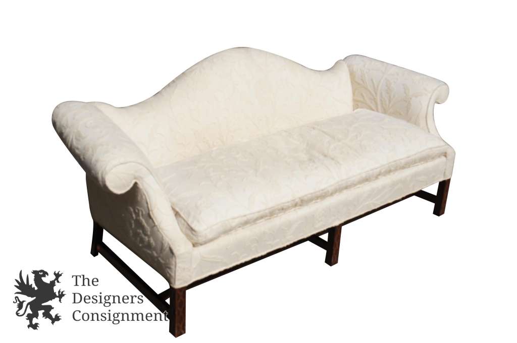 A beautiful piece of furniture by Henredon. Features carved fretwork on the legs and rollover arms. Abeautifulpiece that will look great in any home