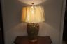 Here is a lovely lamp with exquisite attention to detail. Features a painted base wrapped in wooden basket like design with wicker around the top. A true attention grabber