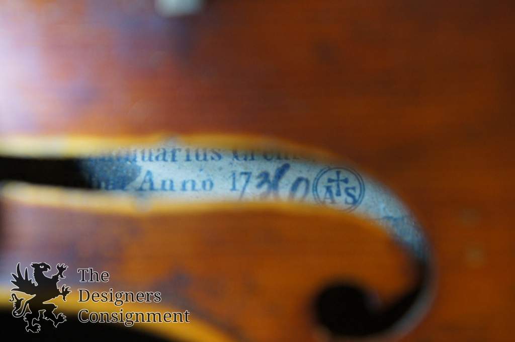 Abeautifulreproduction Stradivarius violin in antique wood case. The back and neck appears to be Maple orSnake-wood.