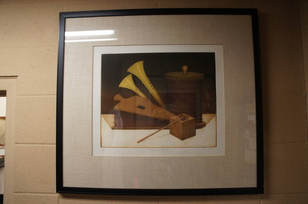 Tighe O'Donohue "Echoing Green" 1978 Pencil Signed Framed Etching Horns Music