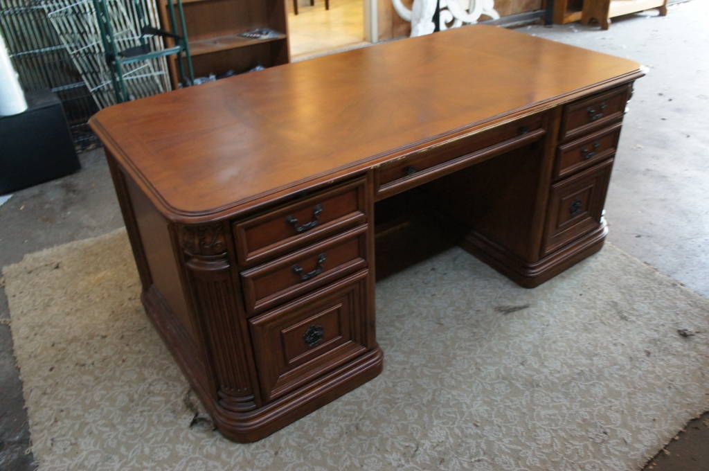 Massive Traditional Inlaid Mahogany Executive Desk File Cabinet Storage Ships