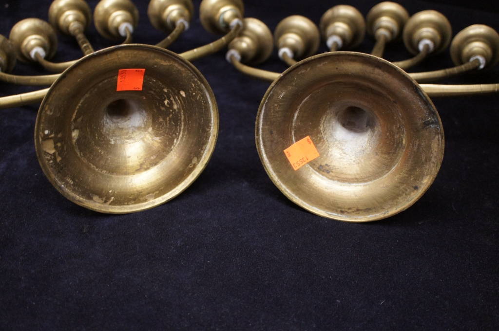 2 Unique Brass 7 Arm Candelabra Candle Stick Pair Menorah Vintage 12