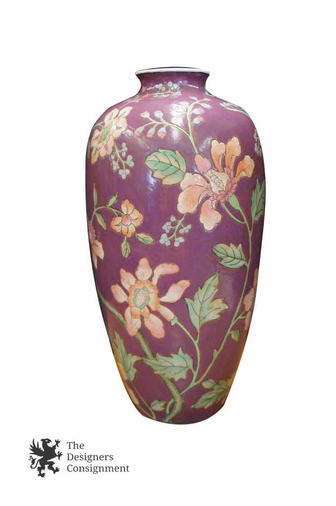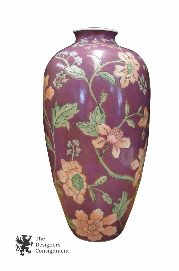 A stunning oriental vase. Hand Painted in Macau. Features Cherry Blossoms in vivid detail. A great addition to any home or office