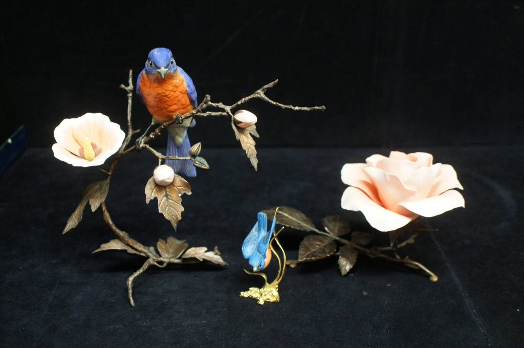 Rare Boehm Porcelain & Bronze Mounted Bird & Flower Figurine Lim Ed Queen Eliz