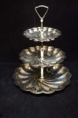 3 Tier Silver Plate Cake Stand Three Tray Appetizers Swirl Dish Serving Plate