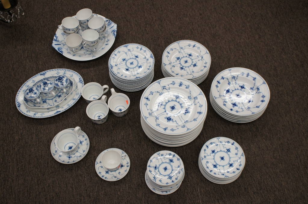 Royal Coppenhagen 573 Vintage 78 Piece Blue Fluted Lace Dinner Service Cobalt