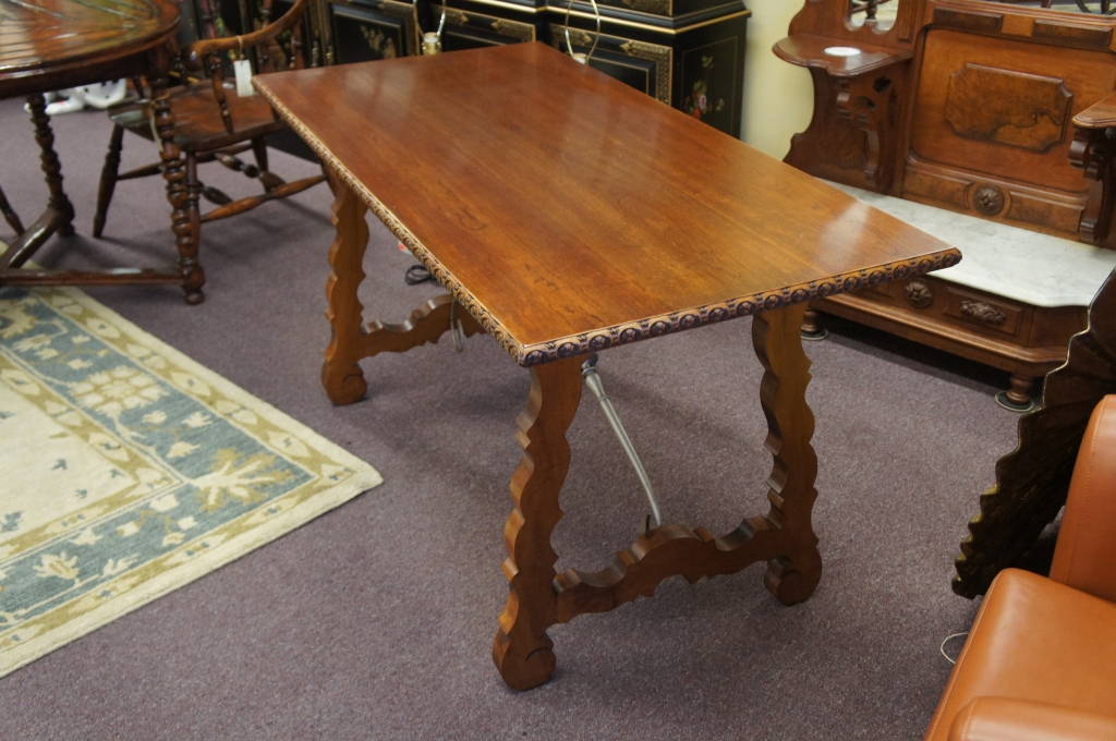 Vintage Spanish Revival Desk Distressed Mahogany W/ Carved Trim Table Stuinning