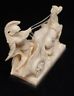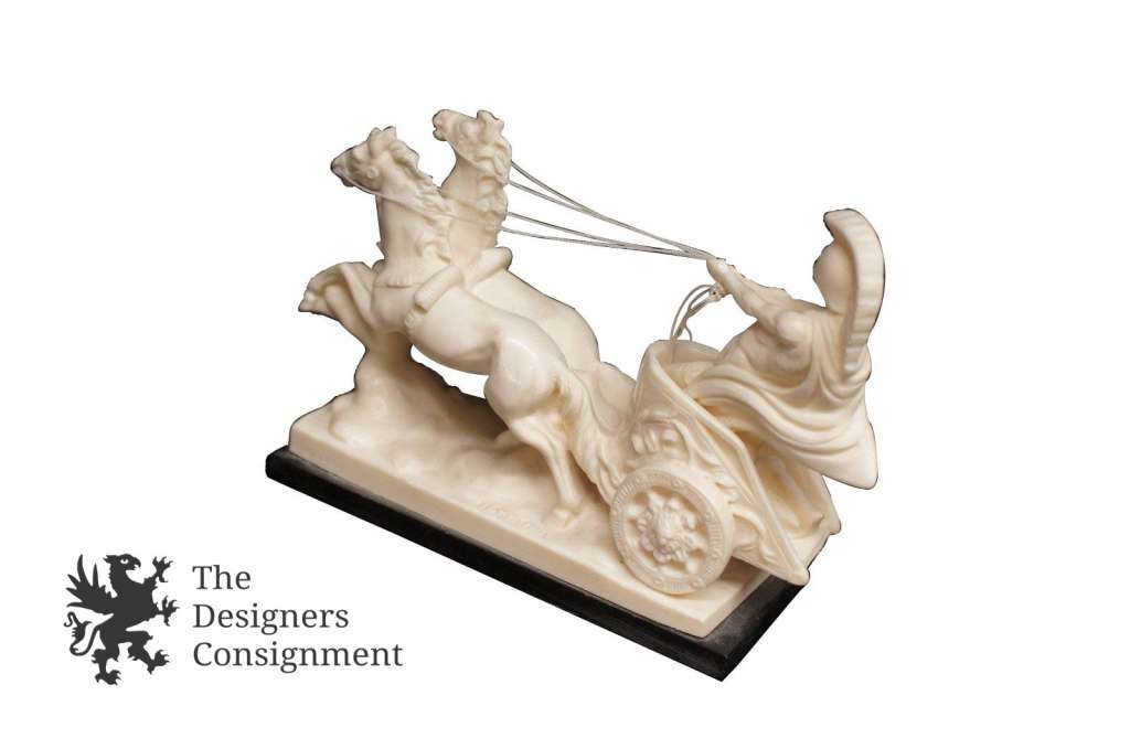 A Santini Italian Sculpture Roman Solider on Chariot Two Horses Alabaster Resin