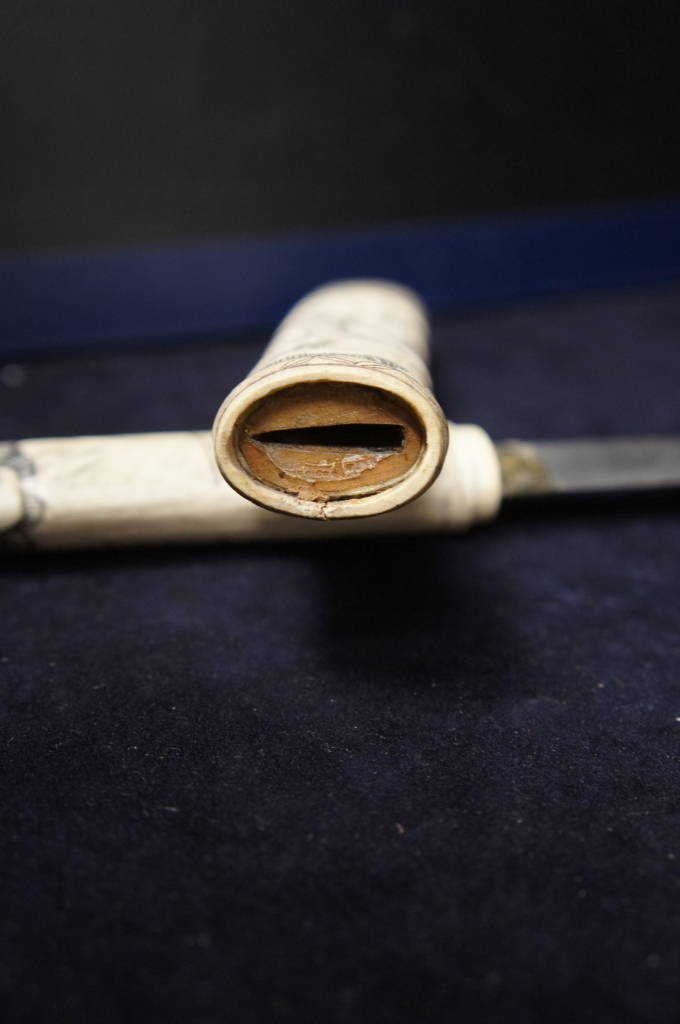 Chinese Steel Dagger W/ Intricately Carved Camel Bone Handle & Sheath Knife