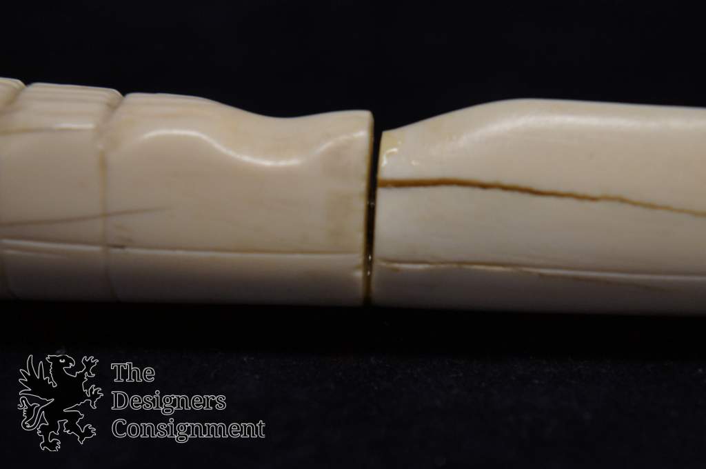 17" Intricately Carved Bovine Alligator Figure Ivory Color