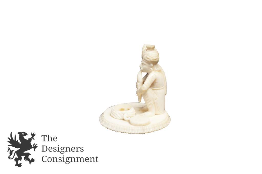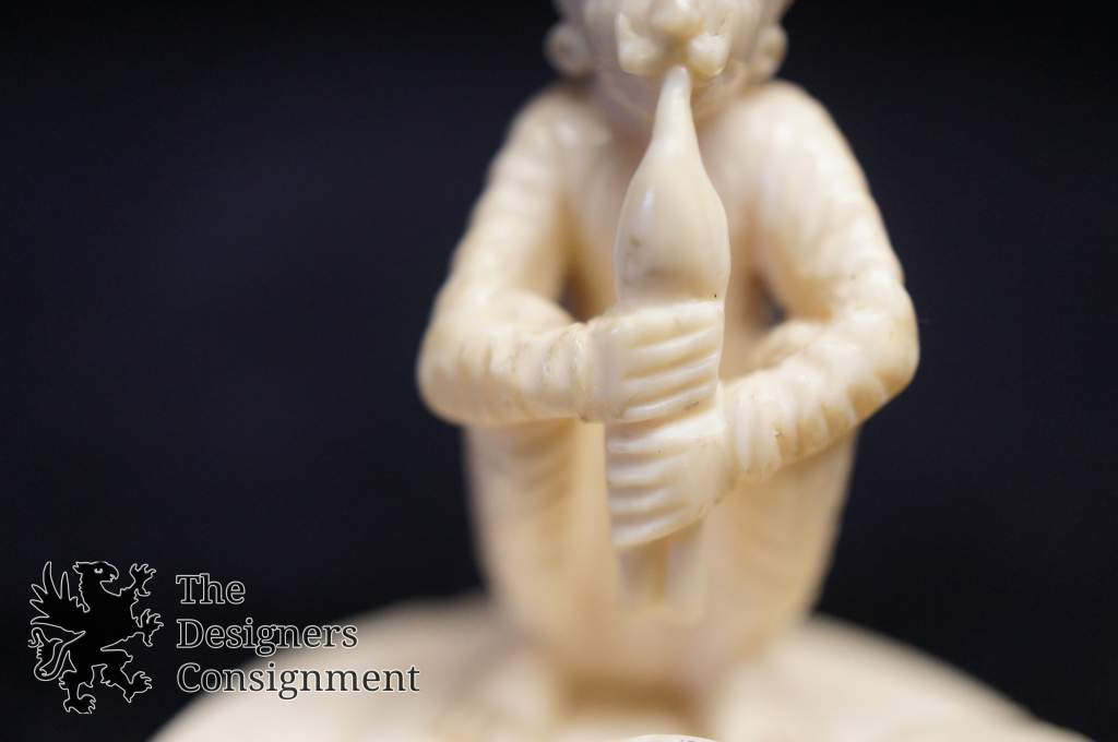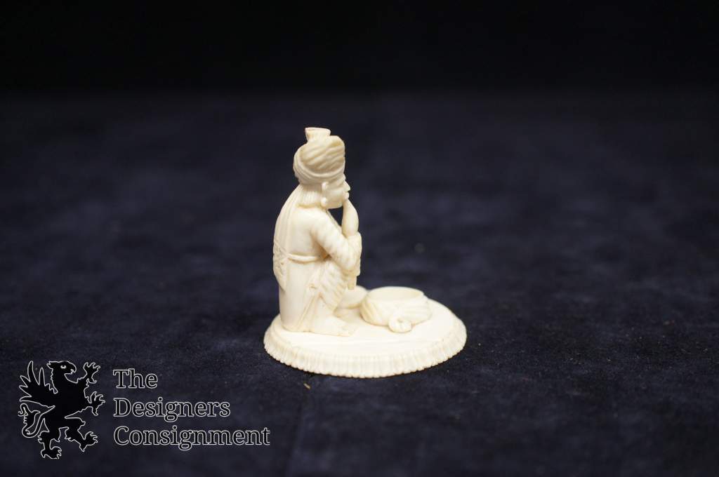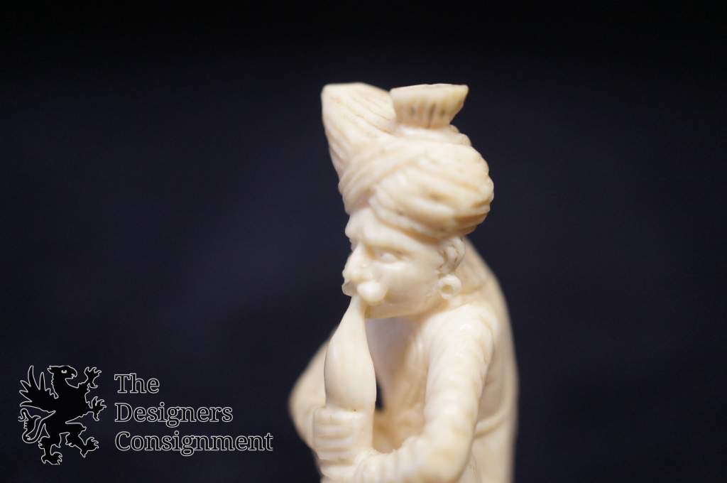 Antique Carved Bovine Snake Charmer Ivory Color Figure