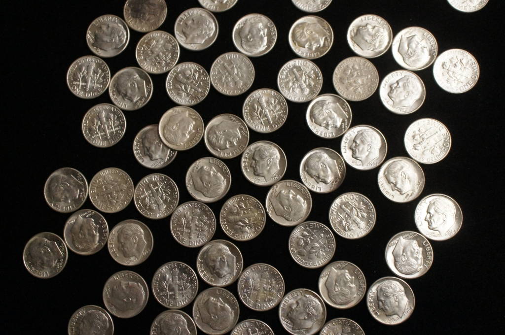 1964 Roosevelt Silver Dimes Lot of 77 90% Silver Coins Roll Collectible