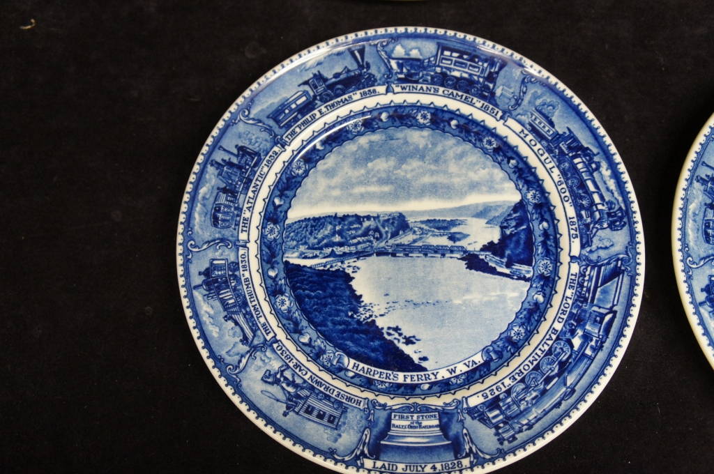 4 Harpers Ferry Transferware Baltimore Ohio Railroad Company Blue White Plates