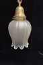 2 Vtg Spanish Brass Hanging Light Tulip Shaped Frosted Glass Shade Chandeleir