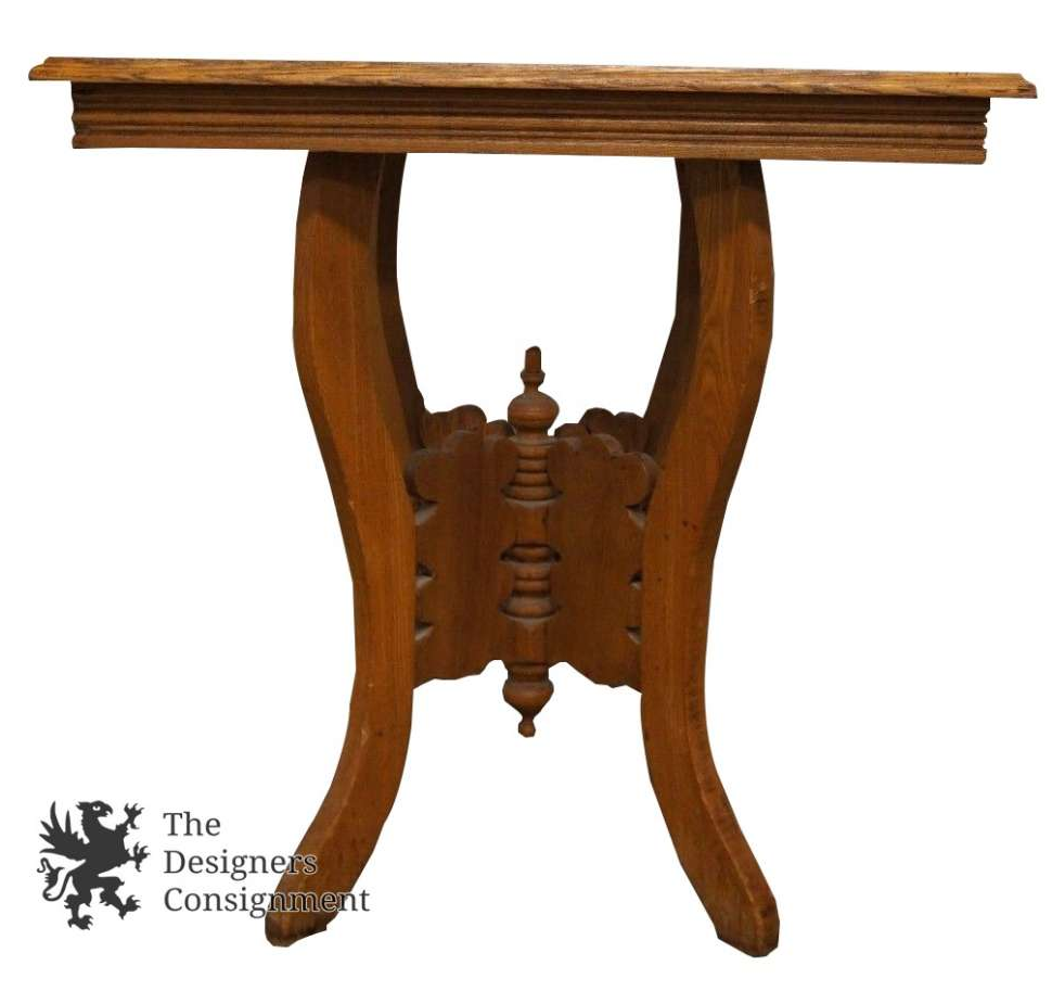 A fun eastlake table. The base features a carved butterfly like accent. Will make a wonderful addition to any home or office