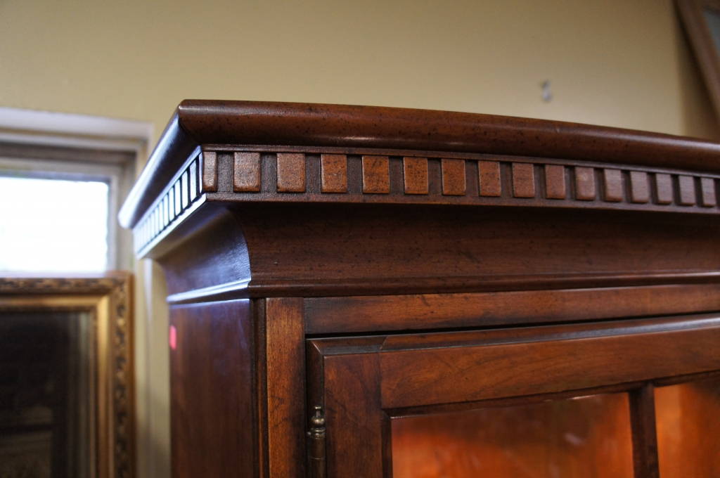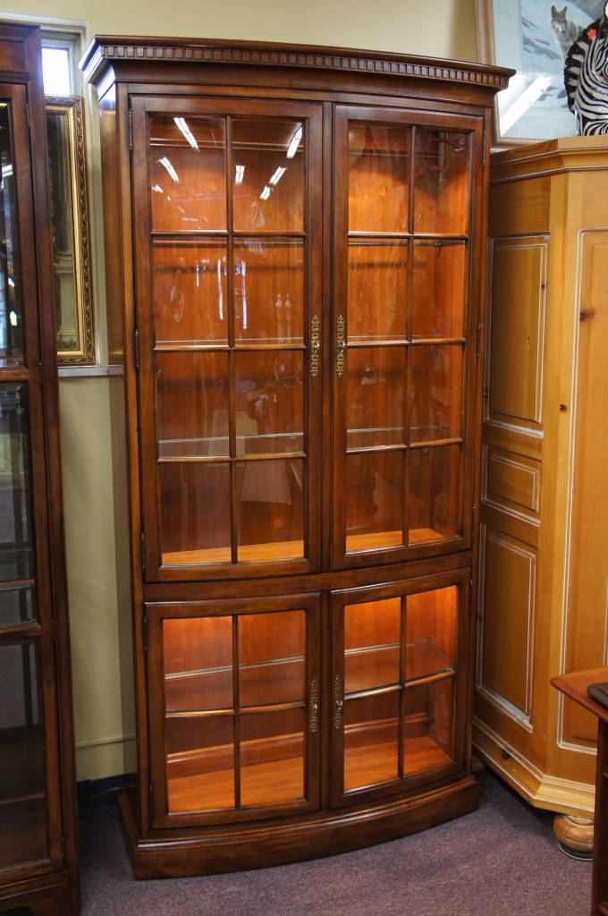 White Furniture Co. Bow Front Curio Cabinet Distressed Mahogany China Display