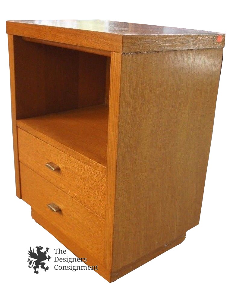 A beautiful mid century nightstand. Made from oak with brass drawer pulls. We also have a matching dressers and mirror if interested.