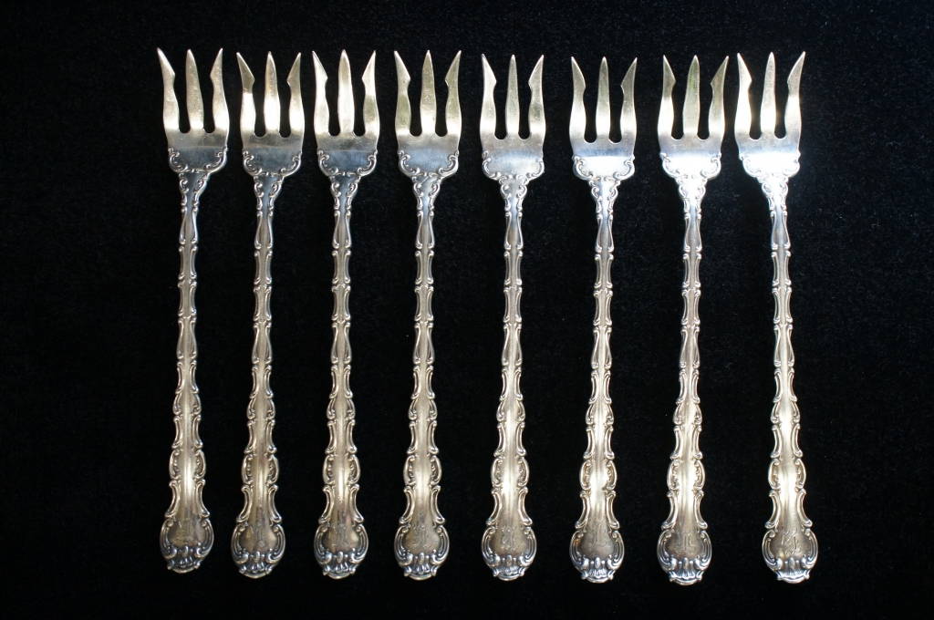 8 Gorham Sterling Silver .925 Louis XV Cocktail Shrimp Forks 127 G Whiting 1891