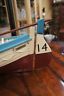 Apainstakingly constructedscale model of one of the world's most infamous lifeboats. Designed to hold up to 68 passengers, mostTitaniclifeboats left the doomed vessel with considerably fewer, even though the ship sailed with too few lifeboats to hold all people aboard.(It is estimated that 472 lifeboat seats were left empty.) This authentically painted wooden craft is complete with mooring ropes, two rescue poles, mast, sails, ten oars, two water barrels and a ration box. Comes with a wall hanging support that makes it appear as if its hanging off the boat itself. Very fine condition.33" from rudder to prow.Apainstakingly constructedscale model of one of the world's most infamous lifeboats. Designed to hold up to 68 passengers, mostTitaniclifeboats left the doomed vessel with considerably fewer, even though the ship sailed with too few lifeboats to hold all people aboard.(It is estimated that 472 lifeboat seats were left empty.) This authentically painted wooden craft is complete with mooring ropes, two rescue poles, mast, sails, ten oars, two water barrels and a ration box. Comes with a wall hanging support that makes it appear as if its hanging off the boat itself. Very fine condition.33" from rudder to prow.