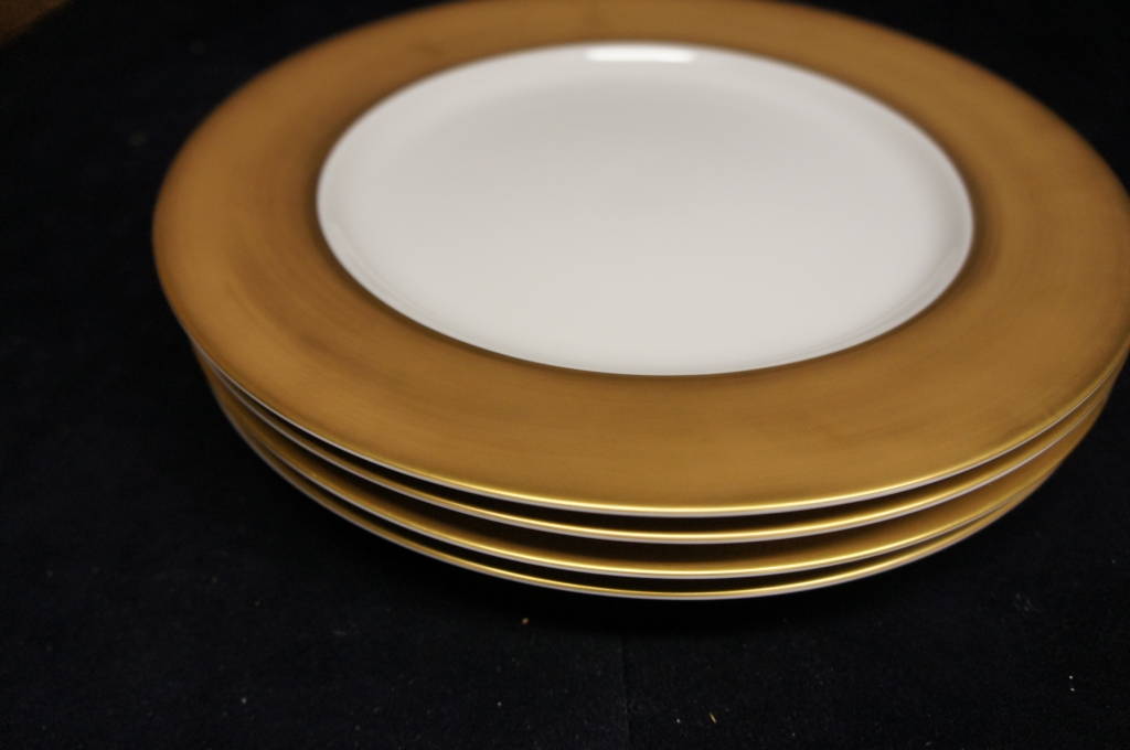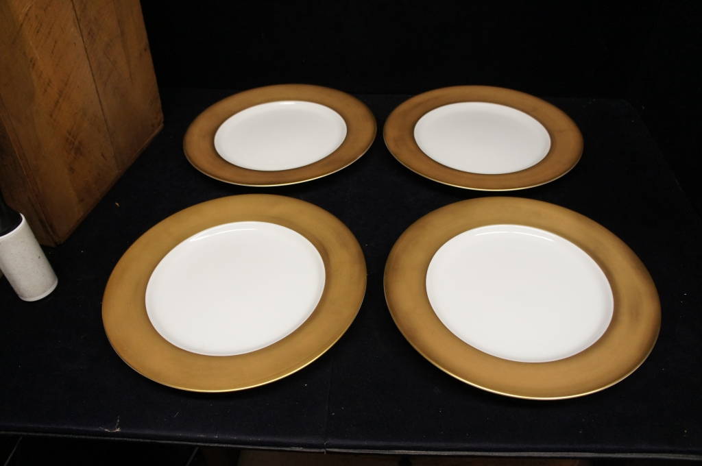 4 Awesome Marc Blackwell Fine Porcelain 12'' Gold Charger Dinner Serving Plates